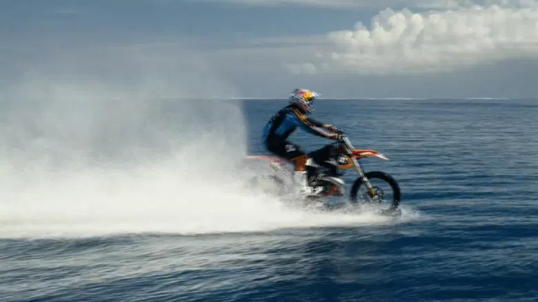 Motocross star surfs big waves on his bike
